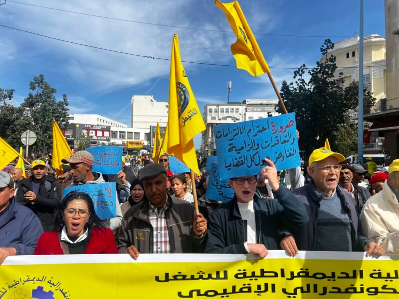 تم اليوم تنظيم مسيرة احتجاجية في الدار البيضاء بدعوة من الكونفدرالية الديمقراطية للشغل، حيث انطلقت من أمام المقر الكونفدرالي من درب عمر، بمشاركة واسعة من النقابات الفرعية والهيئات التابعة للكونفدرالية.بمشاركة واسعة من الشغيلة والأجراء والمواطنين.